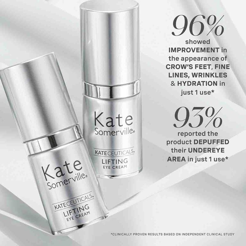 I had been using Trinny London products but they do not include an eye cream. I had been battling a dry patch on my eyelid, close to the brow, for quite some time. Trinny’s products, although they are very fine quality were not alleviating the dryness. I started using Kate Somerville’s eye cream about 3 weeks ago but I noticed that the dry area was gone after approximately 1 week of twice daily use. I am in love with this eye cream. I bought a second bottle already as I never want to be without it!!