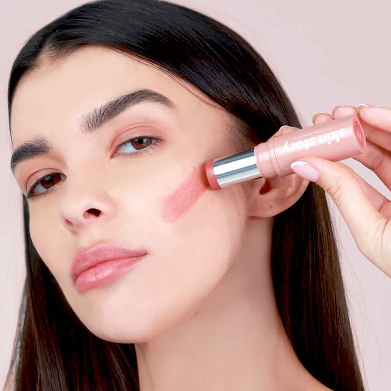 ضعي العصا على الخدين والشفتين والعينين للحصول على لونك! بالنسبة للخد، ضعي الإرث على تفاحات الخدين وامزجيه باستخدام إسفنجة تجميل أو فرشاة أو أصابع. بناء اللون حسب الرغبة.