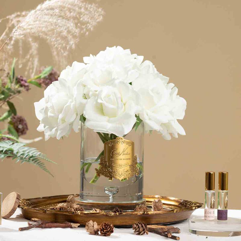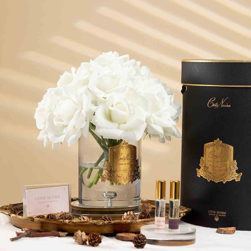 Young and fragrant rose petals warmed by the afternoon sun. Top notes of pink rose layered with notes of peony and iris. A fresh, innocent scent tamed with lingering notes of hibiscus.
