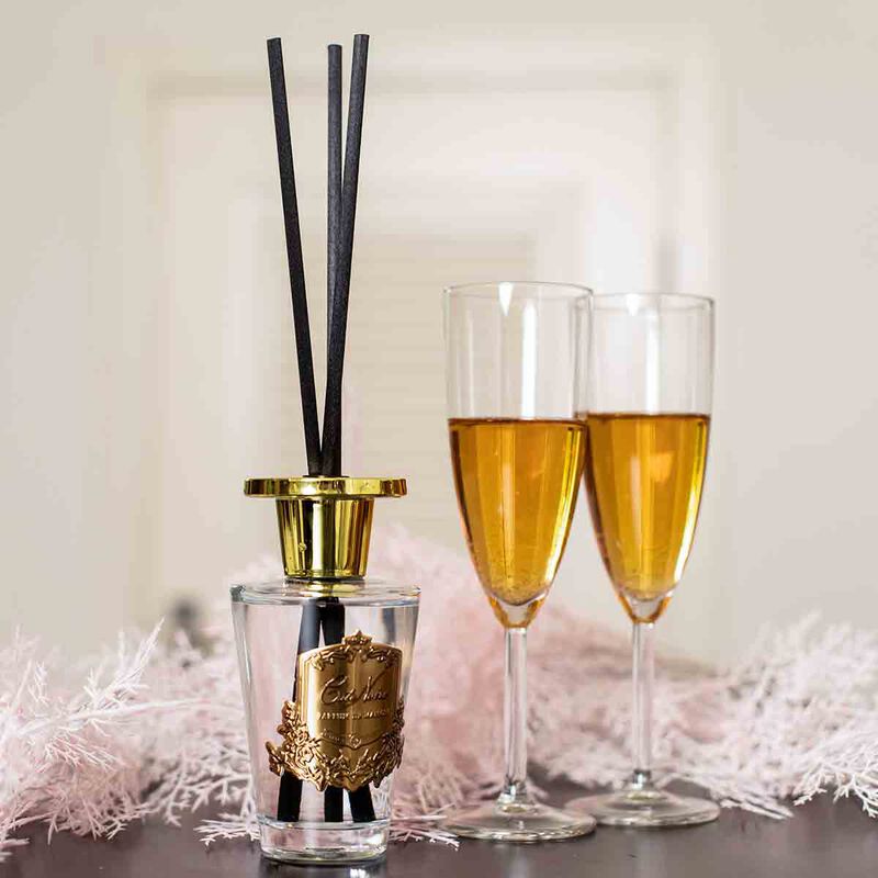 Diffusers come in a clear glass, adorned with a gold Côte Noire badge.