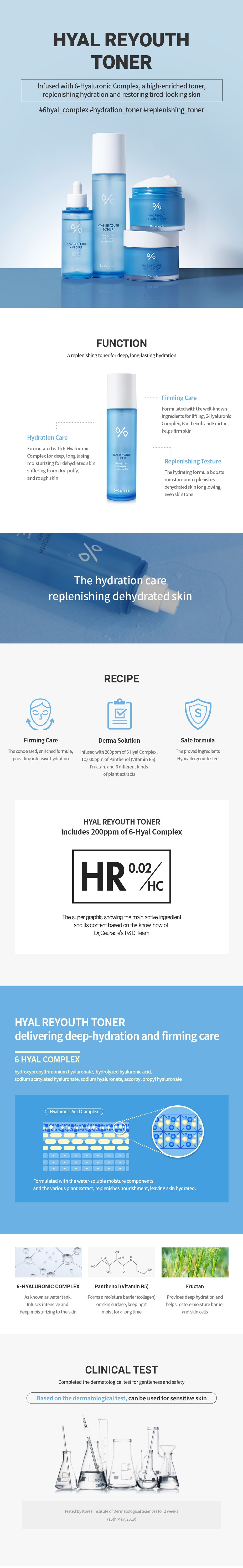 Hyal Reyouth Toner, Deep Hydration with Hyaluronic Acid and Vitamins B3, B5 Toner (120ml)