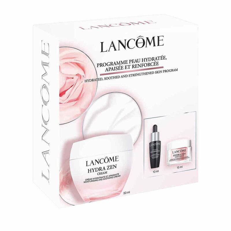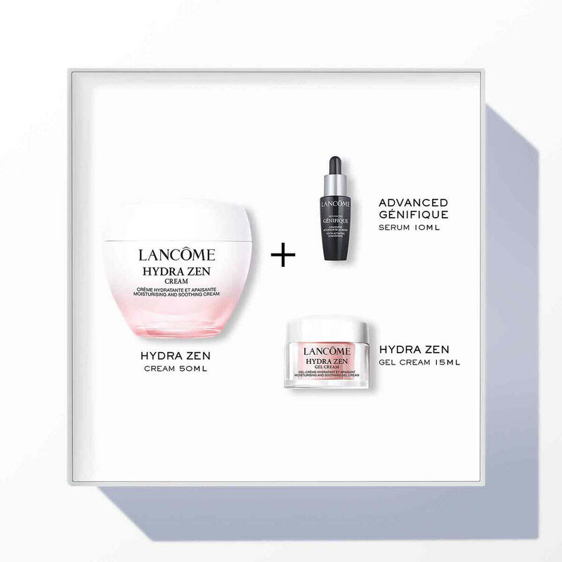A skincare routine set containing day and night creams, face serum and eye cream to get hydrated, soothed and strengthened skin.