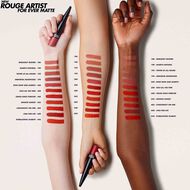 Rouge Artist For Ever Matte is available in 11 ultra pigmented shades, covering 4 different harmonies: 4 Nudes, 1 Pink, 3 Corals and 3 Reds.