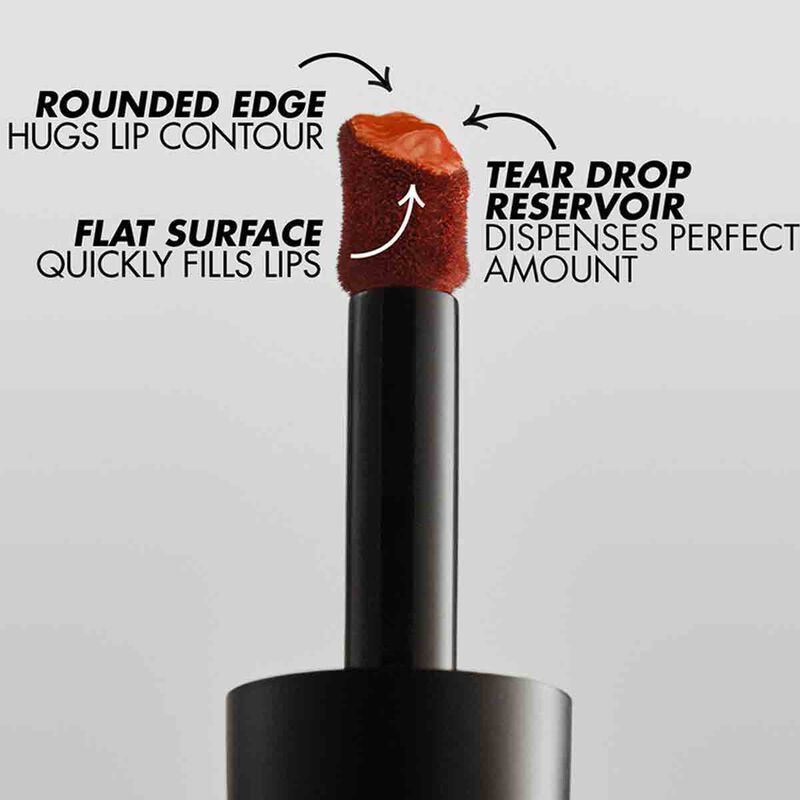 Our team of makeup artists created a formula with volatile oils (so it lasts 24 hours), kaolin clay (for an ultra matte finish), silica micro spheres (to smooth your lips) and soft wax (to ensure all day comfort).
