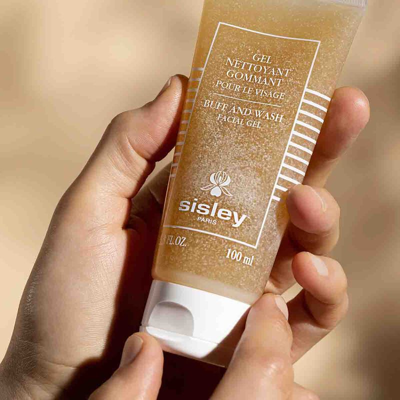 The Buff and Wash Facial Gel gently cleanses and buffs away dead skin cells and impurities in a single motion.