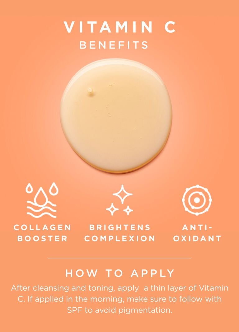 If you're new to using Vitamin C, begin with a small dosage and then build it up in your skincare routine. Apply a thin layer after cleansing and toning. If applied in the morning, make sure you follow with SPF to avoid pigmentationAlthough this ingredient is safe for most skin types, it can cause minor irritation to people with sensitive skin